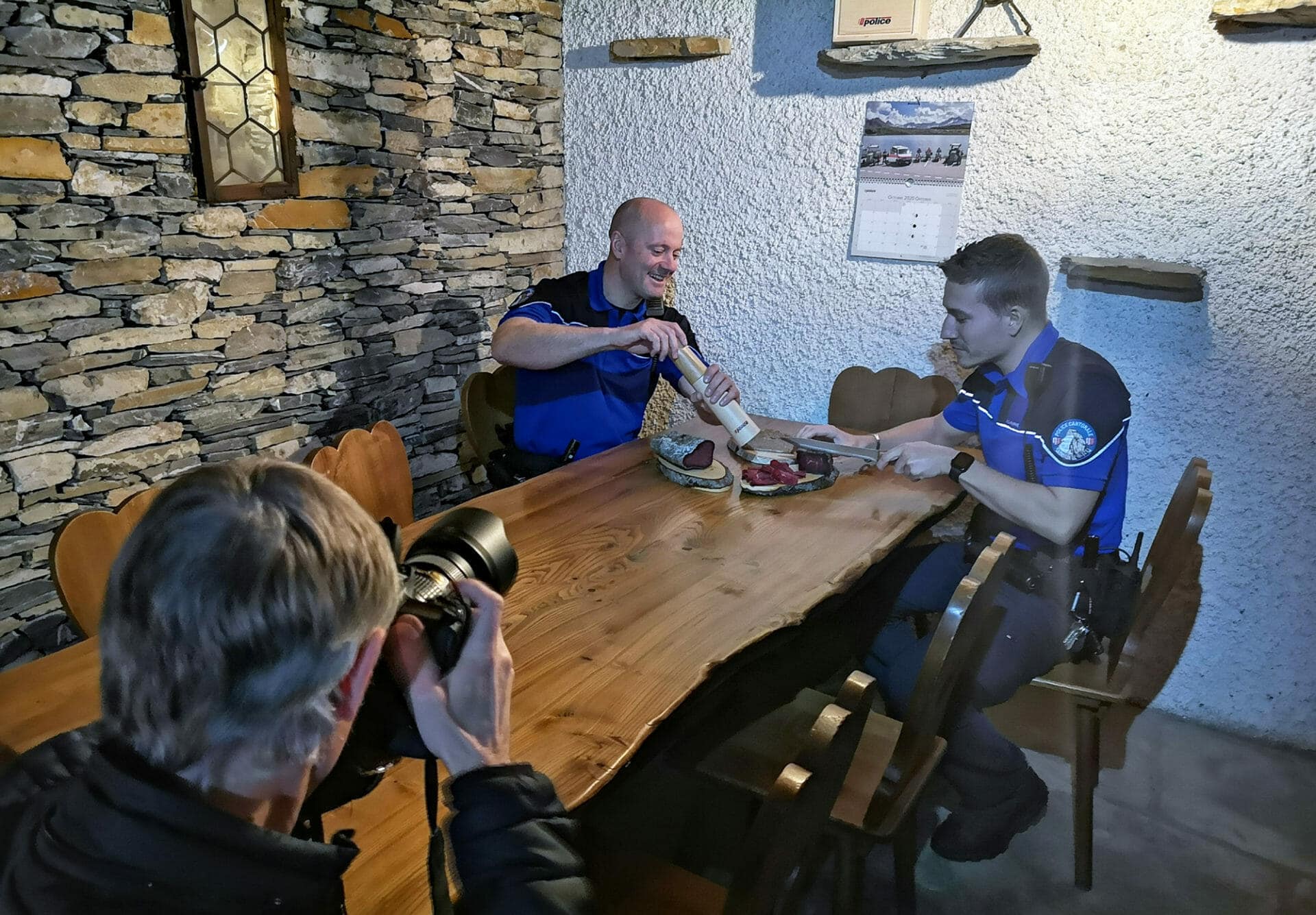 Lors de notre dernière séance photo pour le calendrier annuel 2021 de la Police cantonale, nous avons été chaleureusement accueillis dans un « carnotzet » valaisan traditionnel… Des instants savoureux et une viande tout simplement délicieuse !
